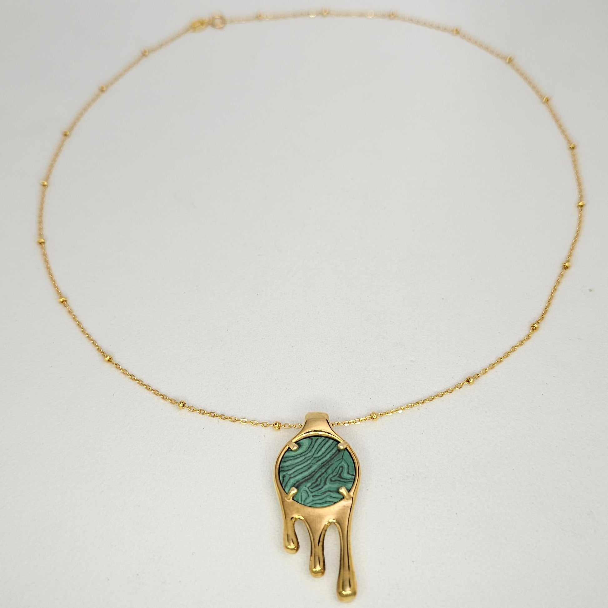 Pendant from the Liquidus collection in yellow gold-plated 925 silver and malachite.