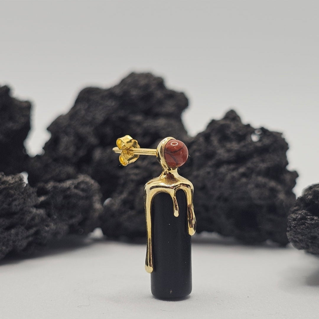 925 silver earrings plated with 18 kt yellow gold with black coral and red jasper.